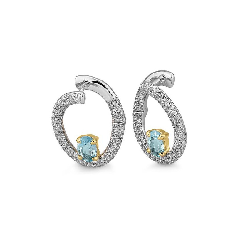 Hoop Earrings - Blue Topaz/dia. 1,377 Ct. H/si